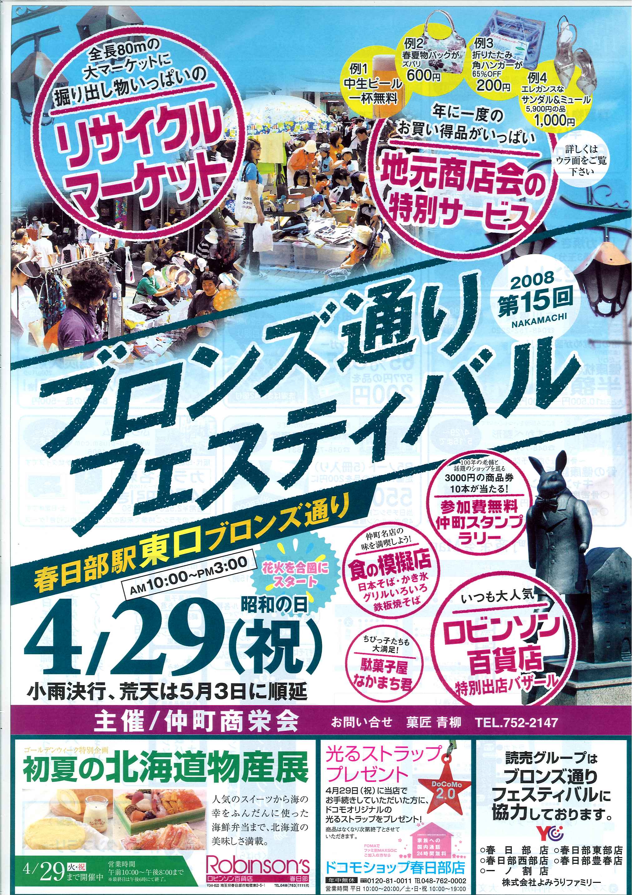 東口の商店街のイベント。4/29日(祝)春日部駅東口ではブロンズ通りフェスティバルが開催されます。