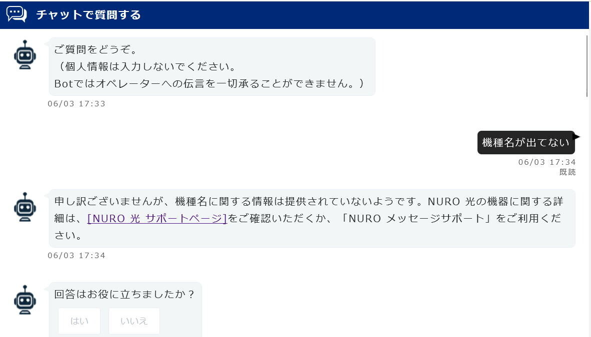 NUROとのチャットは微妙になにかおかしい